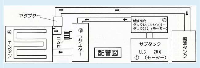 LLC交換作業、エンジン、ラジエター操作を簡素化し、安全に操作できるように当社が技術開発しました。